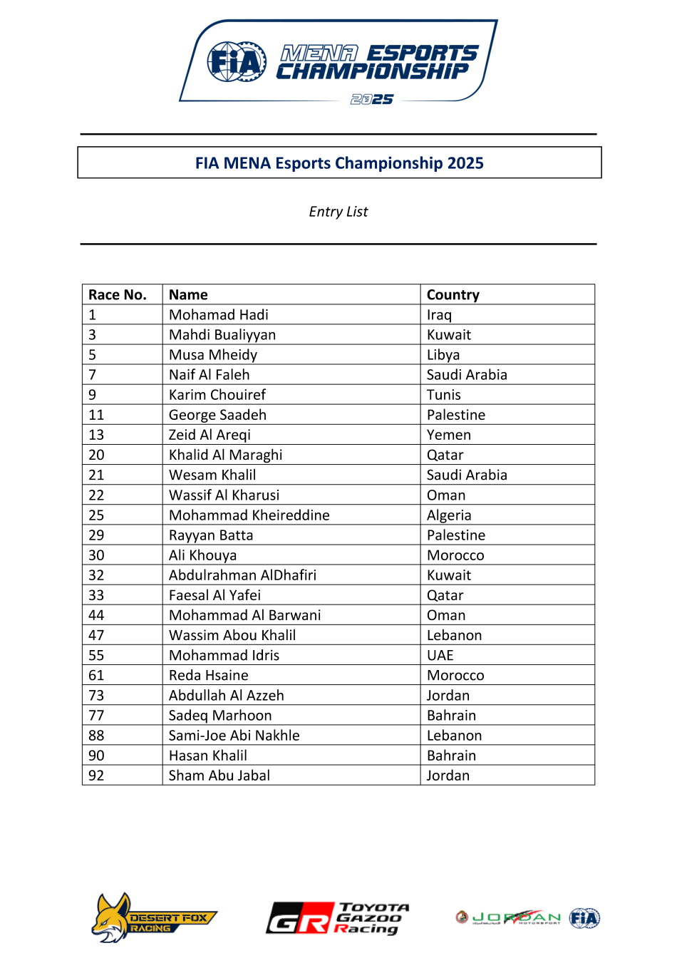 - FIA MENA Esports Championship