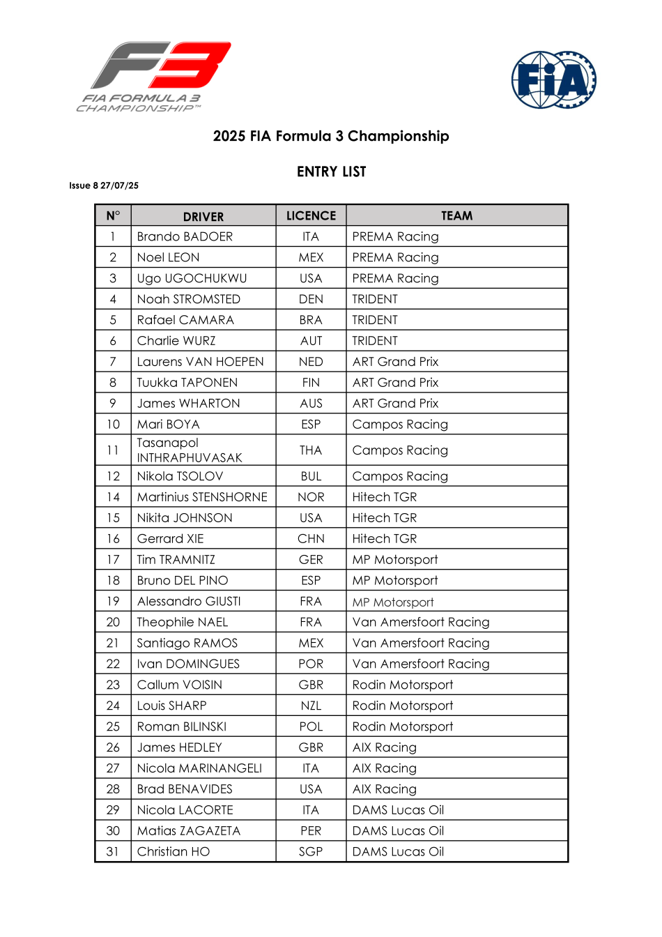 - FORMULA REGIONAL CHAMPIONSHIPS CERTIFIED BY FIA