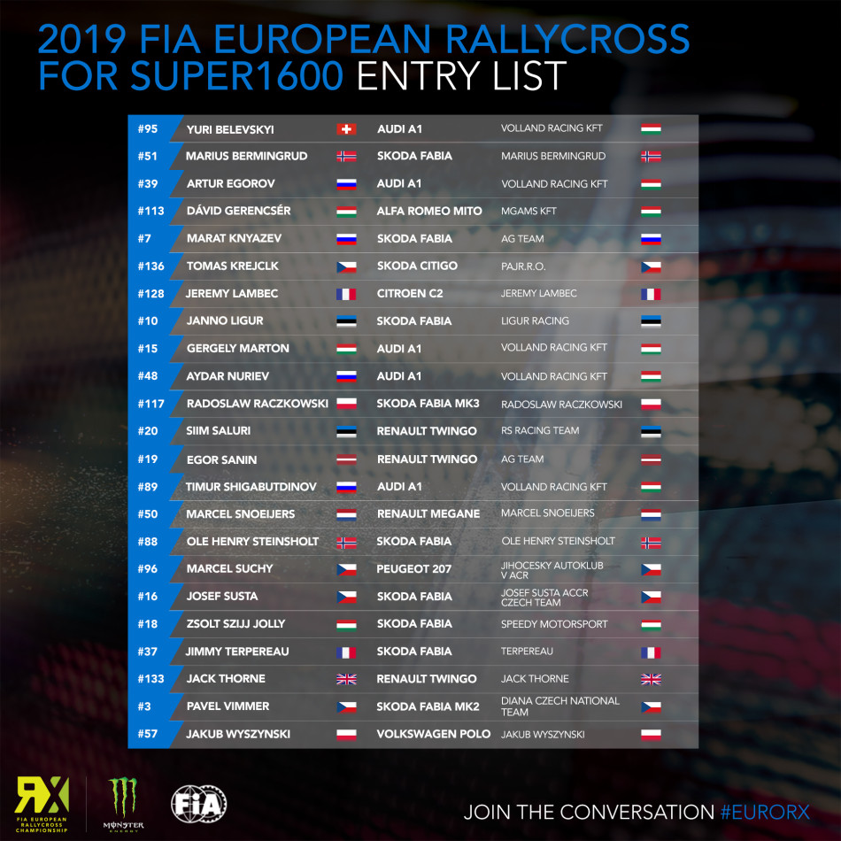 The permanent competitor entry lists for the FIA European Rallycross Championships have been revealed by the FIA.