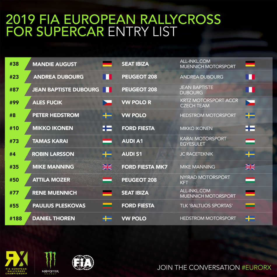 The Euro RX Supercar Championship features 13 drivers representing eight nationalities. Additionally, there are a number of drivers who have already lodged round-by-round entries for various events.