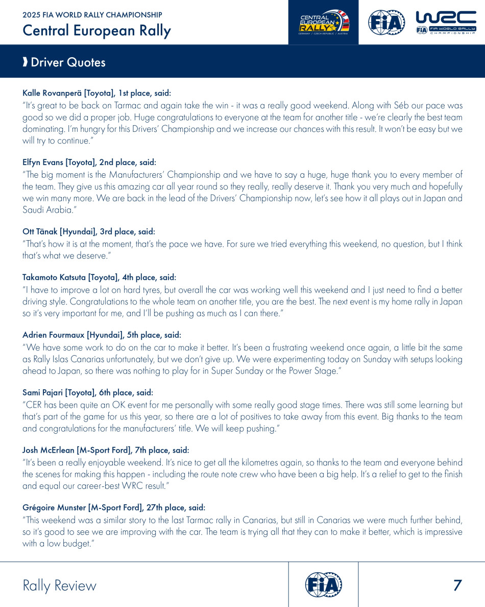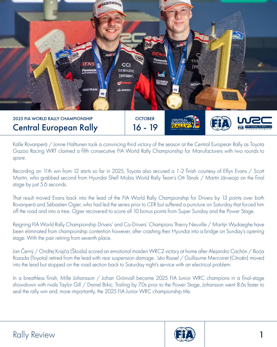 2025 FIA World Rally Championship – Central European Rally – FIA event review