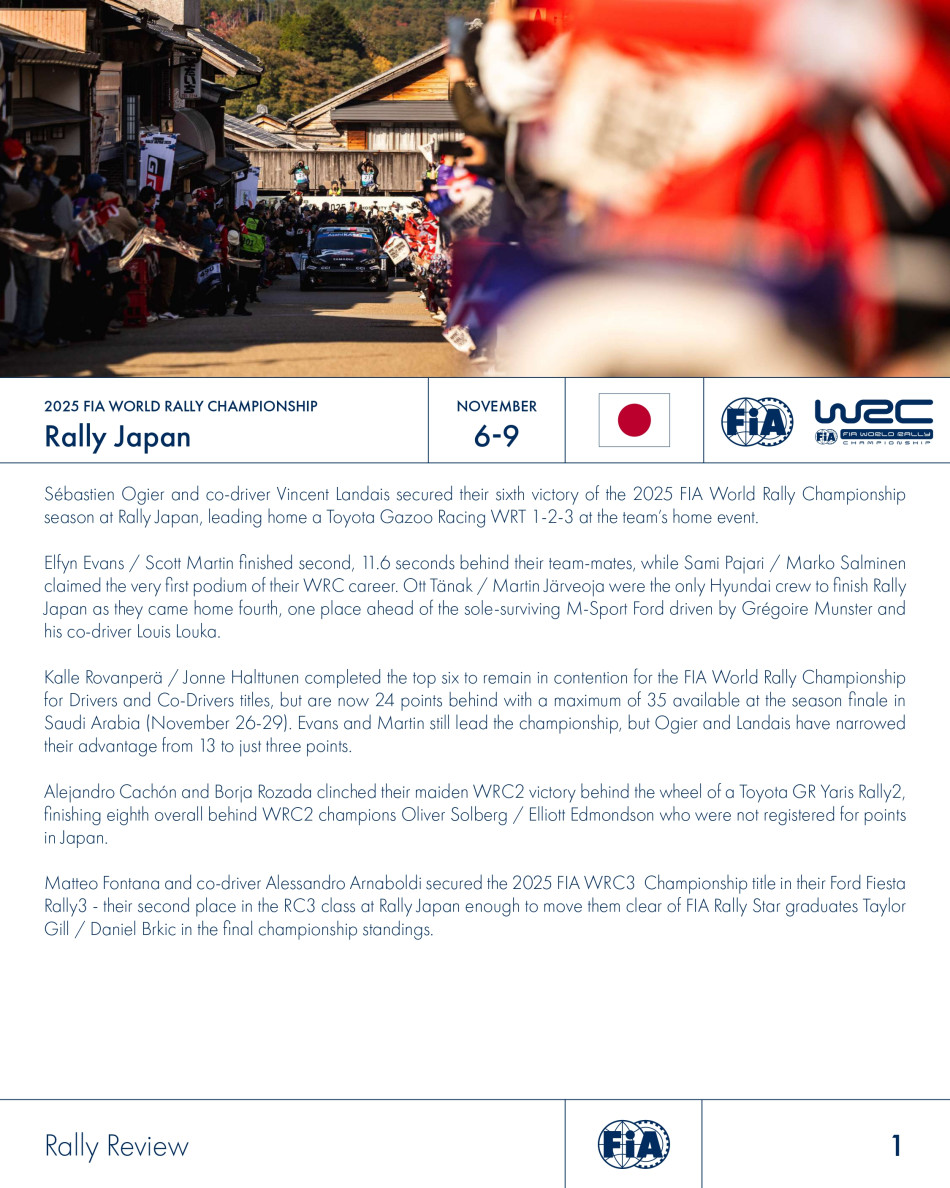 2025 FIA World Rally Championship – Rally Japan – FIA Event Review