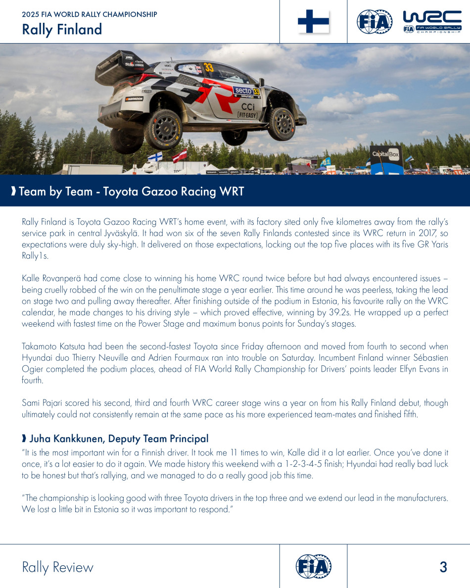 After coming close to winning the previous two editions of Rally Finland, Kalle Rovanperä and Jonne Halttunen were finally able to win their home round of the FIA World Rally Championship, Rally Finland.