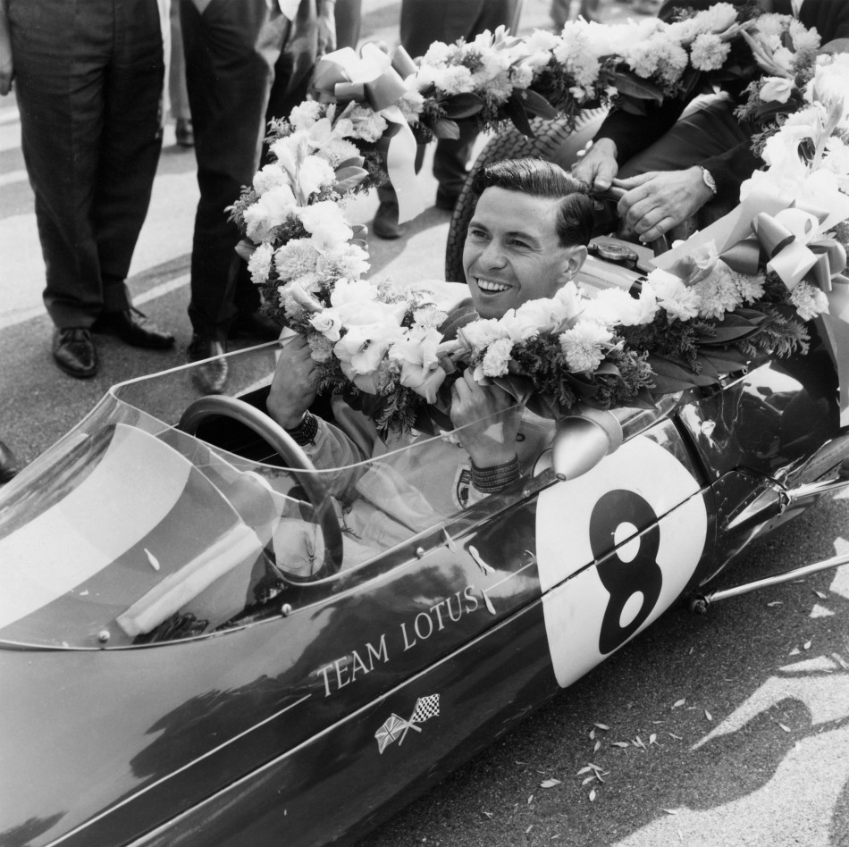 Jim Clark won his first World Championship in 1963, winning an incredible seven races out of ten for the Lotus team in the third most dominant season of any driver ever. He is pictured here at Monza having won the Italian Grand Prix and clinched the Drivers' and Constructors' Championship (for Lotus).