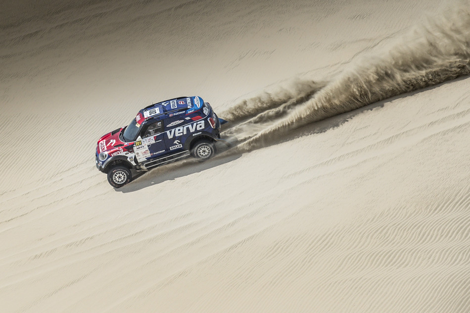 Vladimir Vasilyev continues to hold a lonely fourth, the Russian 35 minutes off the provisional podium with fifth-placed Yasir Hamad Seaidan 34 minutes further behind. The Saudi Arabian X-raid Mini driver dropped time in the first section and was happy with his performance in the dunes, learning more about the car as the kilometres pass. Bernhard Ten Brinke has moved up a position into sixth, courtesy of a broken driveshaft for Miroslav Zapletal. Ten Brinke had a good run through the first stage despite a puncture, navigation working well for him and reigning Champion co-driver Tom Colsoul. They missed a couple of points in the second stage, ending up the wrong side of the dunes, but the Dutch/Belgian pairing are focused on finishing the opening round of the FIA World Cup for Cross Country Rallies on a high.