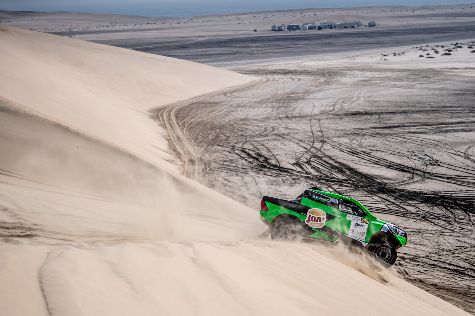 Al Rajhi has climbed into second but the Saudi Arabian driver is only 54 seconds ahead of Przygonski. He gained a couple of minutes on the Pole at the start of the stage to close to within 19 seconds, but it was not until the final section that he managed to overhaul his rival to take the position, despite collecting a puncture. Przygonski admitted to losing the time at the end of the stage, but had good rhythm and speed and enjoyed the long dusty trouble-free section.