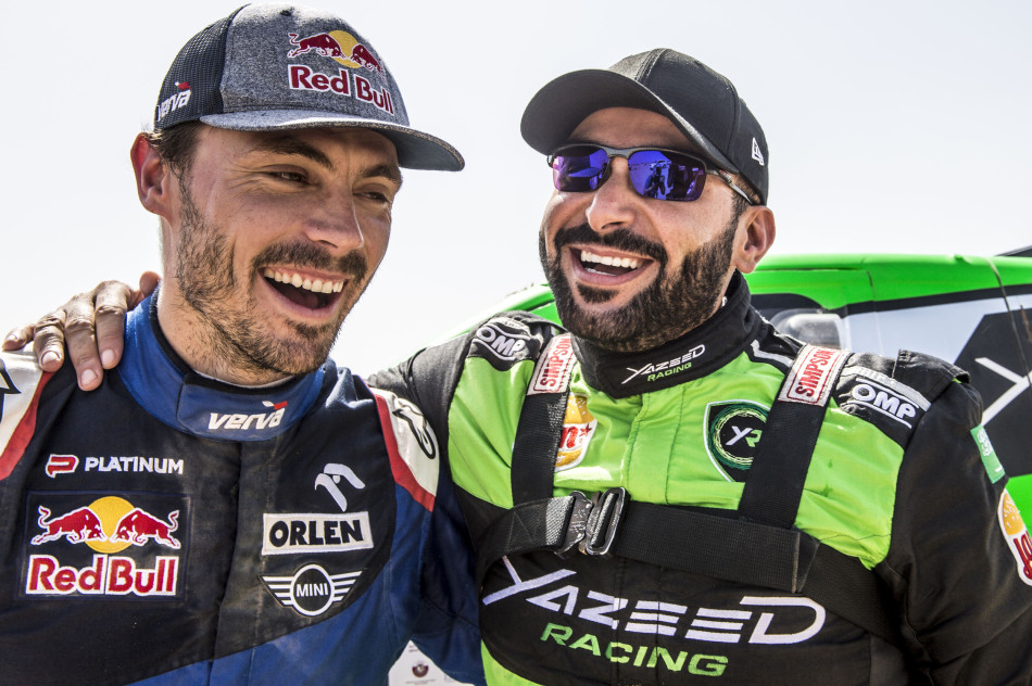 Jakub Przygonski and Yazeed Al Rajhi at the finish of the Qatar Cross Country Rally