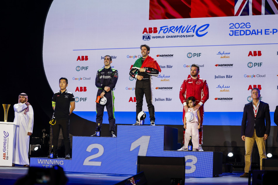 António Félix da Costa and Jaguar TCS Racing nailed their race strategy to stride to the race win in the 2026 Jeddah E-Prix Round 5, with the Portuguese driver leading Sébastien Buemi (Envision Racing) home and reigning champion Oliver Rowland (Nissan Formula E) rounding out the podium.