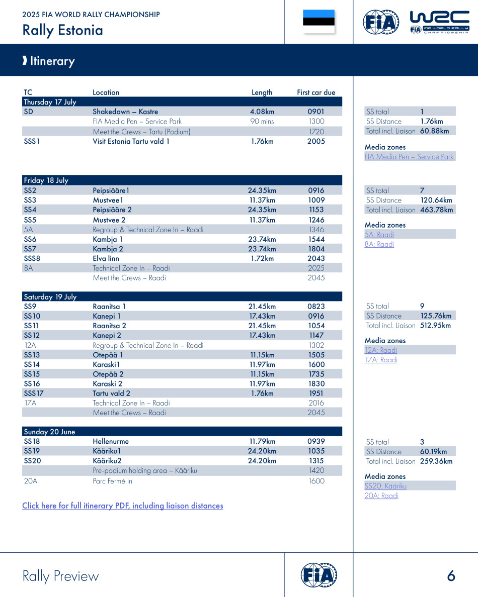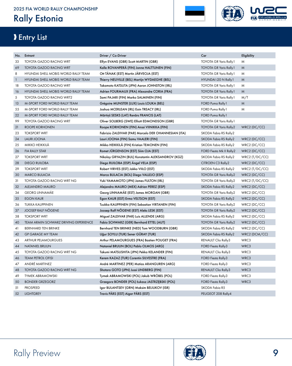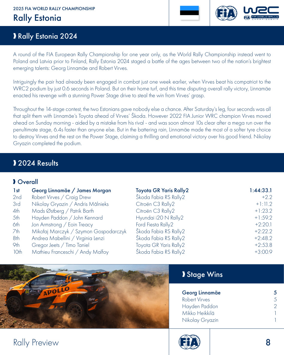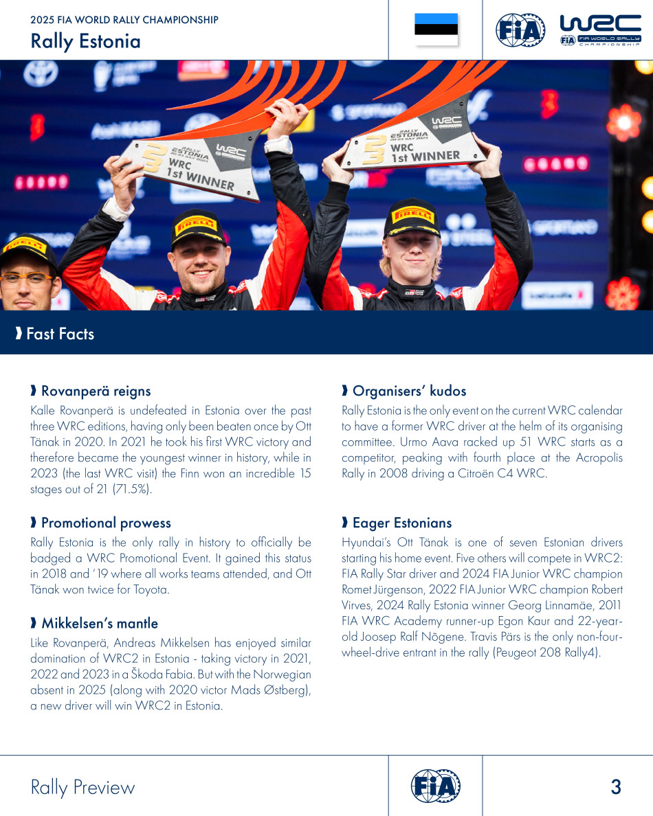 As the FIA World Rally Championship speeds into the second half of the 2025 season, the pace picks up as the crews prepare for the lightning-fast roads of Rally Estonia. Back on the calendar after a one year hiatus in the FIA European Rally Championship, Elfyn Evans starts the event as championship leader but has home hero Ott Tänak just 12 points behind him.