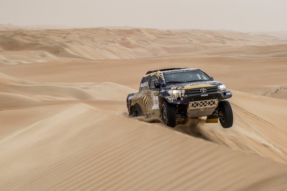 Aron Domzala and Maciej Marton, in a third Toyota Hilux Overdrive, also set a storming pace and the Polish crew has rocketed from sixth to third having only been beaten by Peterhansel in the section. “We had an amazing day!” said Domzala. “We had a minor electrical issue for around three minutes early on in the stage. We caught Vladimir [Vasilyev] and Al Qassimi and had a close ride with those guys until Vladimir had a puncture and dropped behind. I couldn’t get past Al Qassimi, his pace is quick.”
