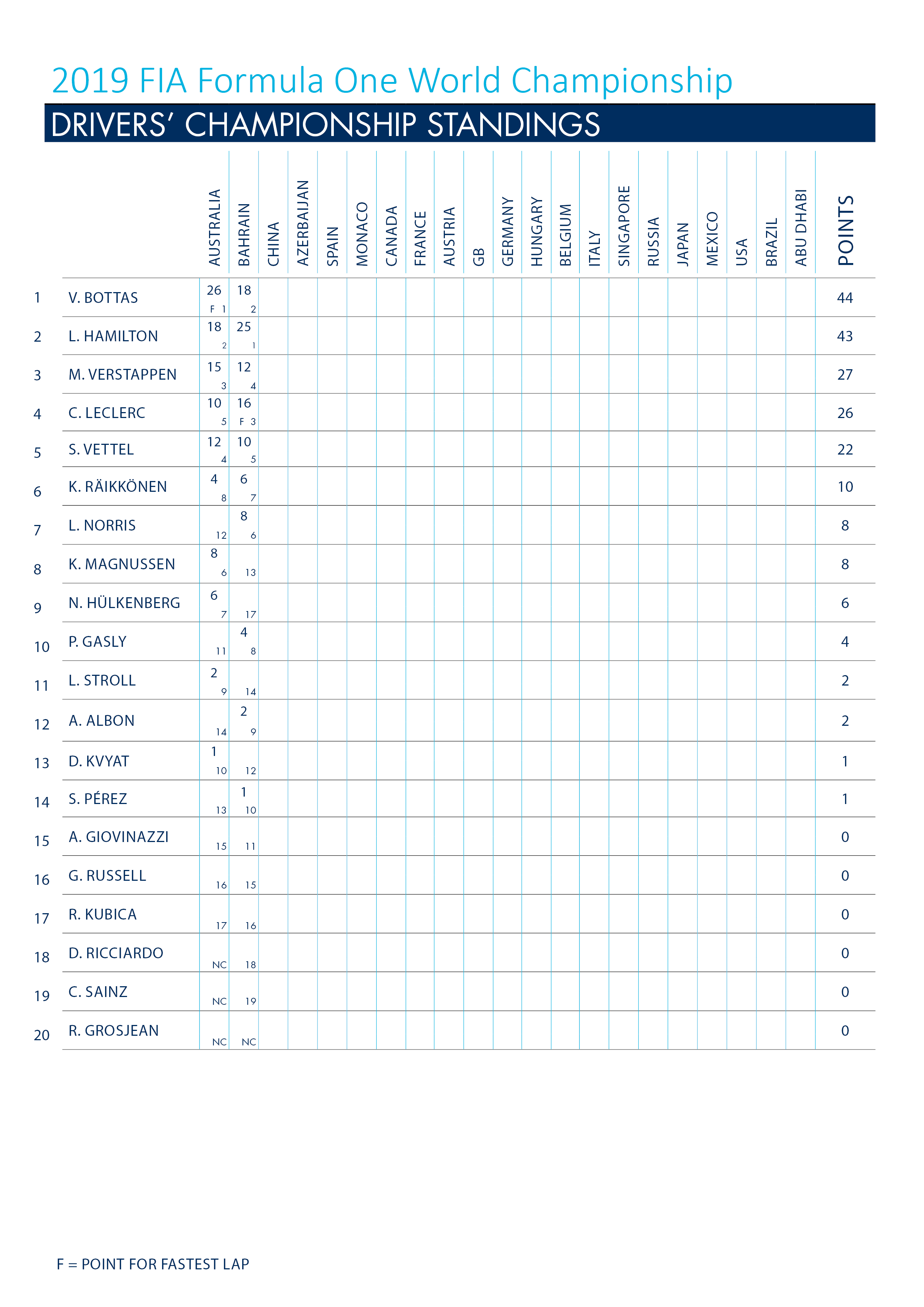 DRIVERS 1 – Lando NORRIS (McLaren) 2 – Max...