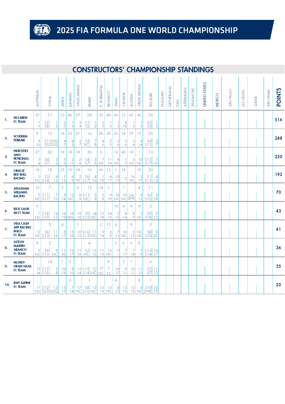 DRIVERS 1 – George RUSSELL (Mercedes) 2 – Max...