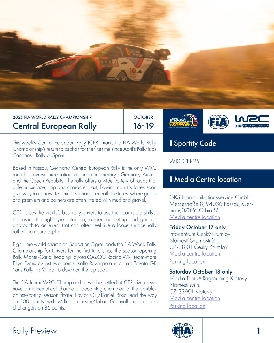 This week’s Central European Rally (CER) marks the FIA World Rally Championship’s return to asphalt for the first time since April’s Rally Islas Canarias - Rally of Spain.