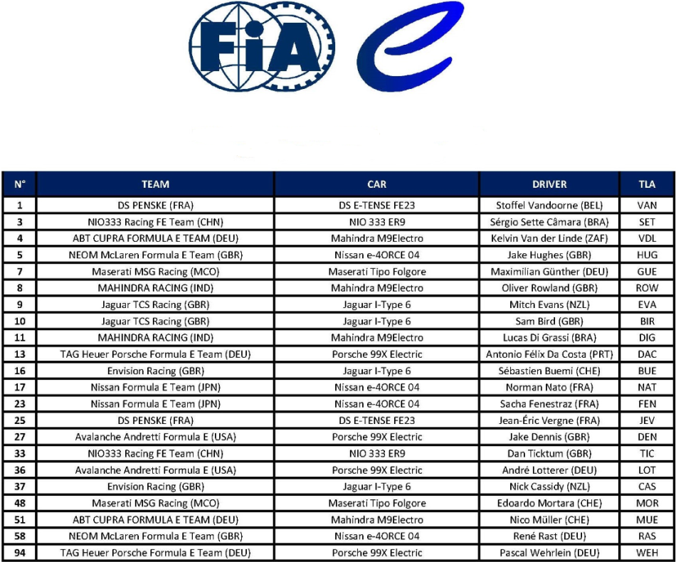 2023 ABB FIA FORMULA E DIRIYAH E-PRIX ENTRIES