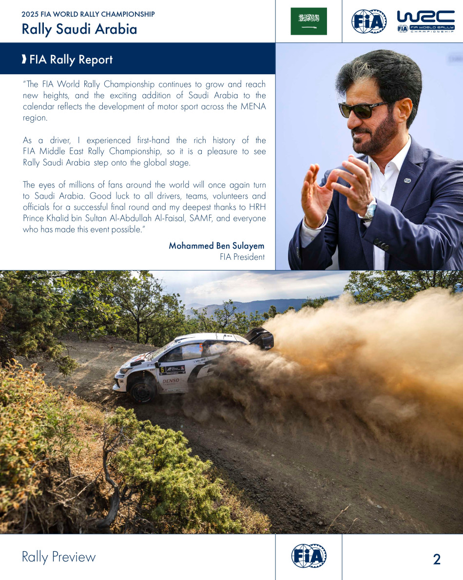 After 13 events in all corners of the globe, the 2025 FIA World Rally Championship concludes at Rally Saudi Arabia (November26-29) with the Drivers and Co-Drivers’ titles still to be decided.