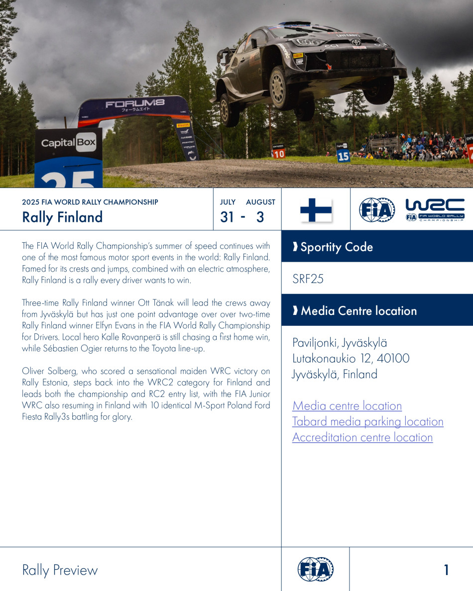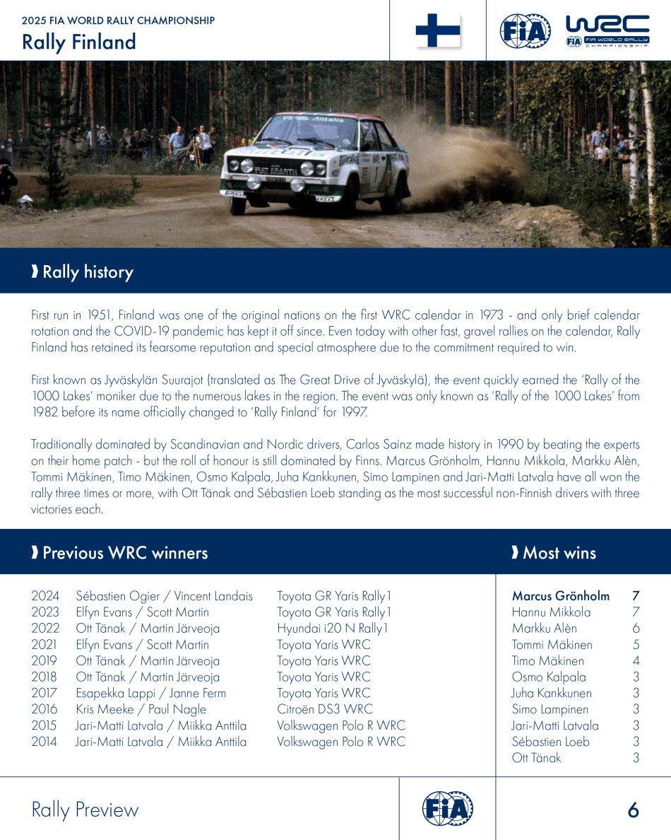 The FIA World Rally Championship’s summer of speed continues with one of the most famous motor sport events in the world: Rally Finland.