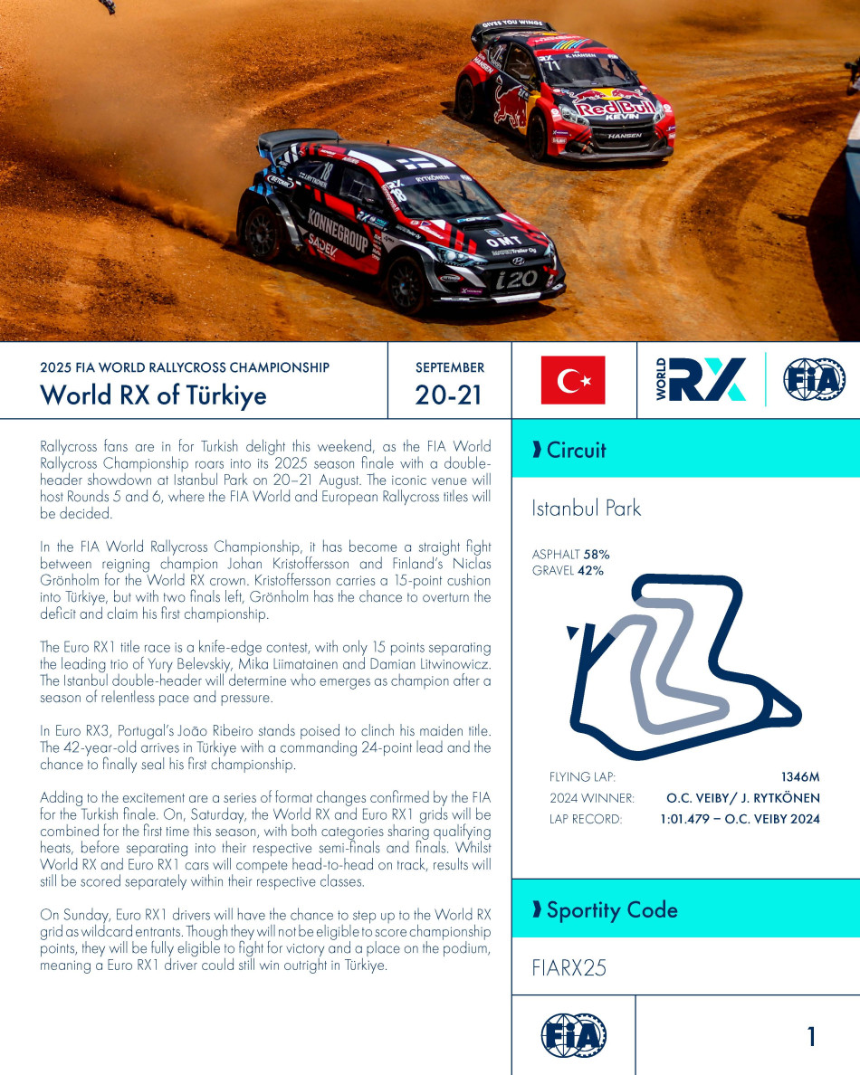 Rallycross fans are in for Turkish delight this weekend, as the FIA World Rallycross Championship roars into its 2025 season finale with a double-header showdown at Istanbul Park on 20–21 August.